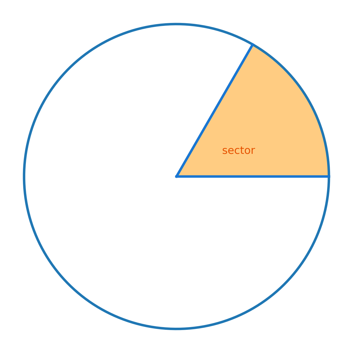 Un sector circular es la porción limitada por dos radios y un arco.