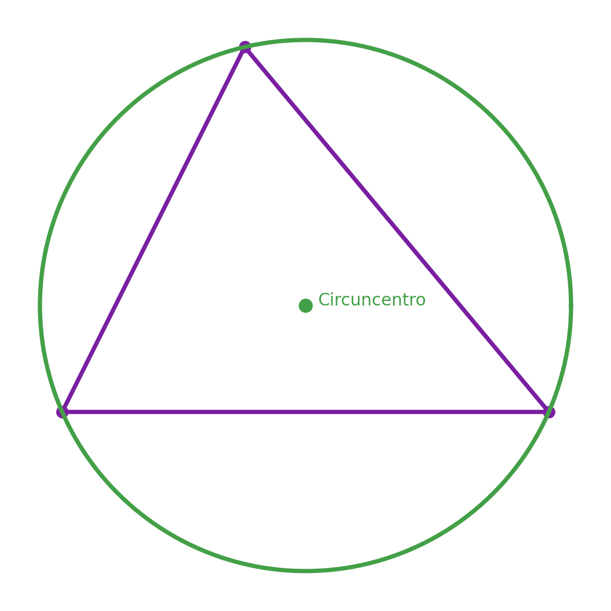 Es la circunferencia Conjunto de puntos equidistantes de un centro que pasa por los tres vértices.