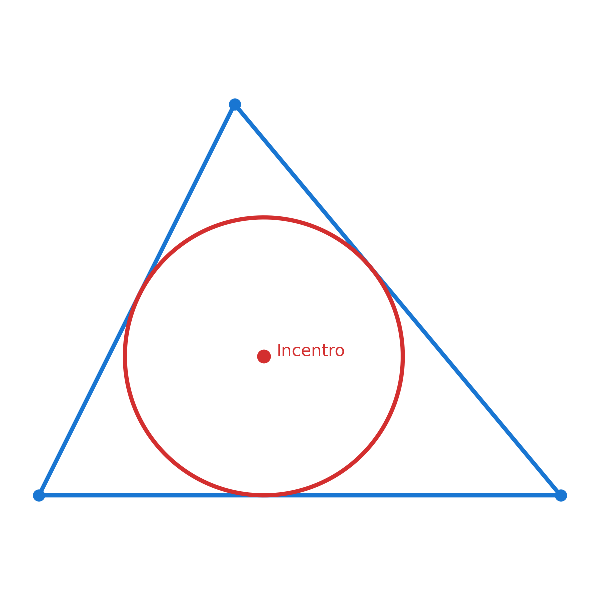 Es el círculo Región del plano delimitada por una circunferencia que toca internamente los tres lados del triángulo.