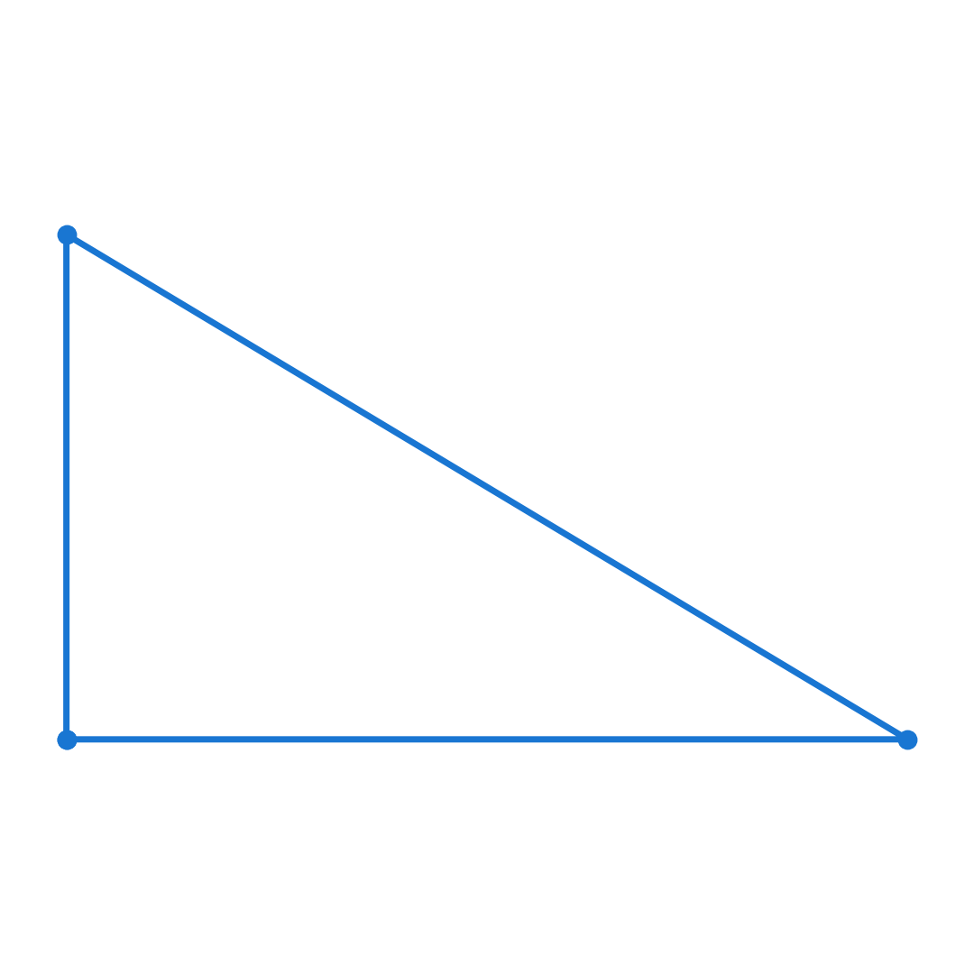 En este simulador, ese ángulo recto está anclado. Agarra los otros vértices y estíralos todo lo que quieras. Fíjate en el lado más largo (la famosa hipotenusa): ¿ves cómo se estira para compensar sin romper la esquina de 90°? Pista: intenta hacerlo súper plano y fíjate en cómo los otros dos ángulos se pelean por sobrevivir.