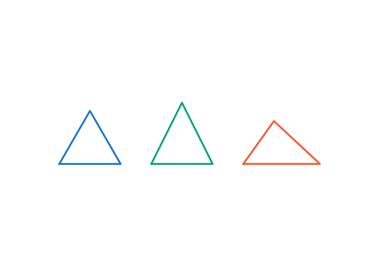 Isósceles: Dos lados iguales y uno distinto.